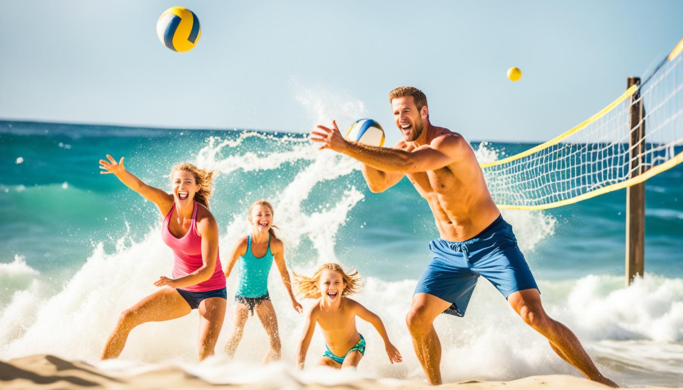Playing beach volleyball is a top summer activity at the beach. It mixes the excitement of a team sport with the chill of the seaside. Whether you’re skilled or new, it’s a great way to enjoy the sun and have fun by the water.