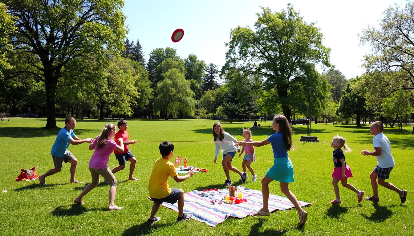 Some games have been loved for generations, bringing joy to families and friends. The frisbee and tag are timeless favorites. They need little equipment and are simple to set up, making them great for Family Fun in the Park Games.