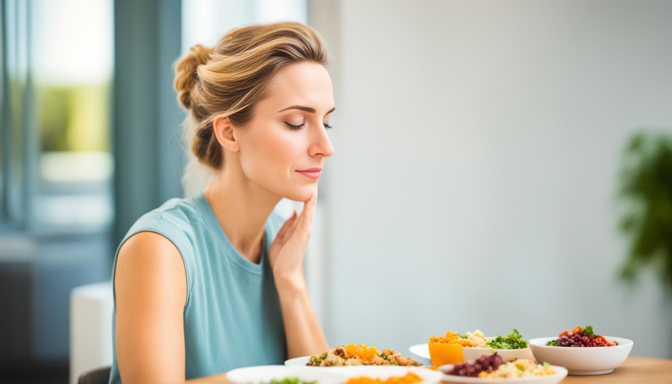 Practicing mindful eating can change how you see food. It’s about listening to your body’s hunger and fullness signals. Pay attention to when you’re really hungry and when you’re full enough.